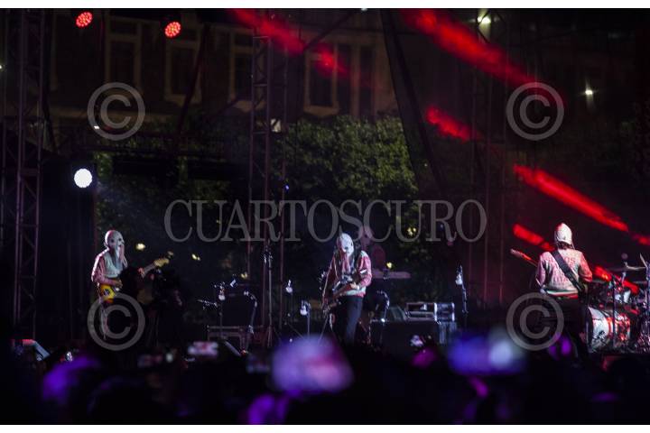 MORELIA, MICHOACAN, 09NOVIEMBRE2012.- Austin TV se presento de manera gratuita en la plaza Valladolid del centro de la ciudad de Morelia, en una actividad paralela al Festival Internacional de Cine en el que la banda de rock instrumental mexicana estreno el performance musical "Loteria". FOTO: ALAN ORTEGA /CUARTOSCURO.COM