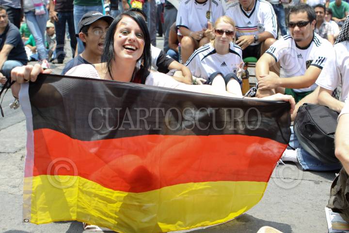 MÉXICO, D.F., 13JUNIO2010.- Aficionados Alemanes acudieron a la plancha del Zócalo Capitalino en donde se encuentran las pantallas gigantes como parte del Fifa Fan Fest a ver el partido entre Alemania vs Australia del mundial Sudafrica 2010. FOTO: RODOLFO ANGULO/CUARTOSCURO.COM
