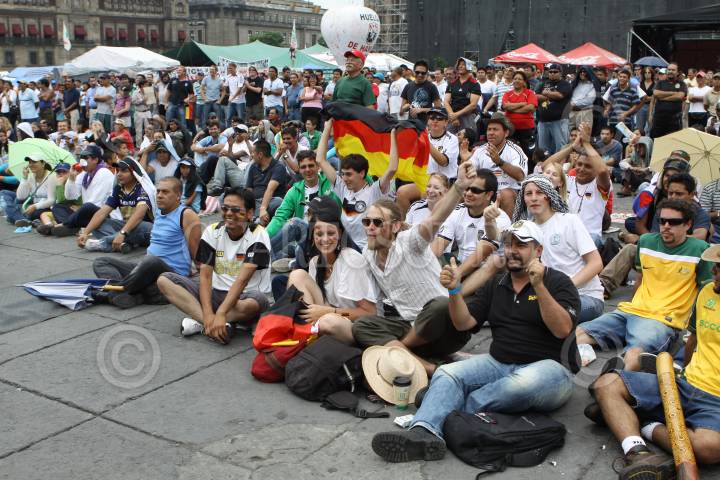 MÉXICO, D.F., 13JUNIO2010.- Aficionados Alemanes y Australianos acudieron a la plancha del Zócalo Capitalino en donde se encuentran las pantallas gigantes como parte del Fifa Fan Fest a ver el partido entre Alemania vs Australia del mundial Sudafrica 2010. FOTO: RODOLFO ANGULO/CUARTOSCURO.COM
