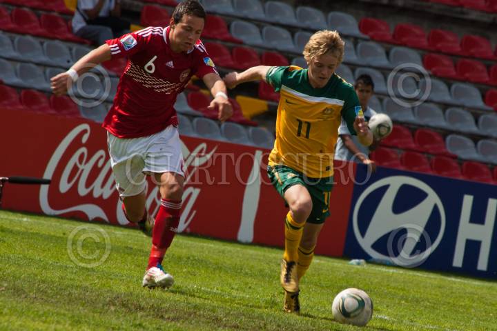 QUERÉTARO, QUERÉTARO, 26JUNIO2011.- Este lunes en el estadio Corregidora, se llevó cabo la repetición del partido del grupo F de la 14a Copa Mundial de Futbol Sub-17 entre Australia y Dinamarca. El juego terminó empatado 1-1. FOTO: DEMIAN CHÁVEZ/CUARTOSCURO.COM