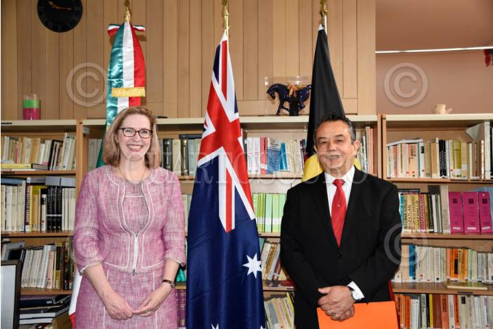 Eduardo Peña Haller, embajador de México en Australia, y Pip Spence, subsecretaria para las Artes del Gobierno de Australia, encabezaron la ceremonia en la cual se recuperó patrimonio cultural prehispánico en colaboración con el gobierno de Australia.