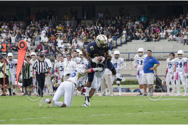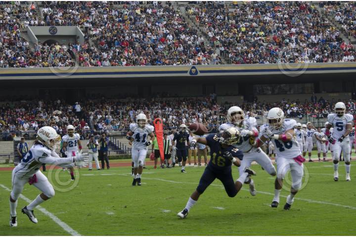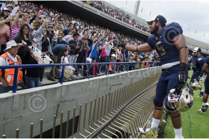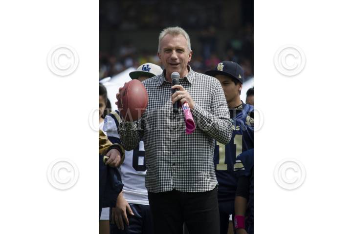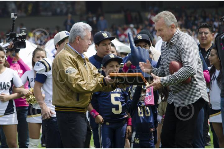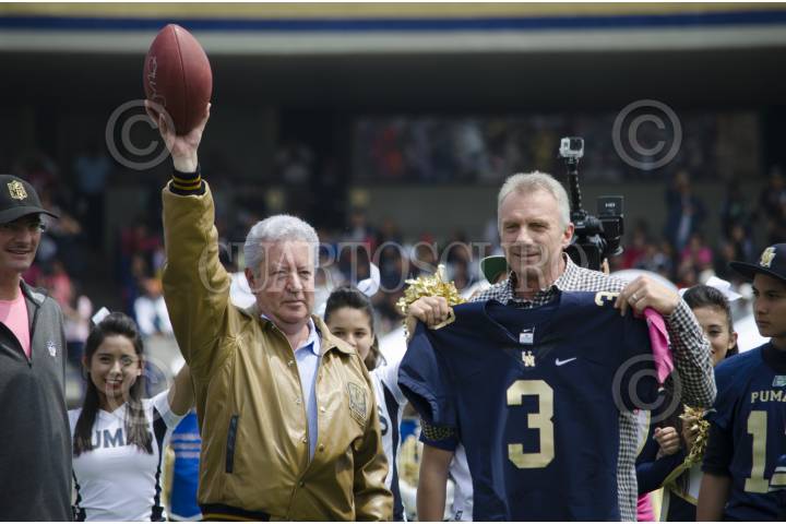 MÉXICO, D.F., 04OCTUBRE2014.- El equipo de fútbol americano Pumas CU venció a Auténticos Tigres en tiempos extra de la liga mayor de la ONEFA en el Estadio Olímpico Universitario. En el medio tiempo se homenajeo al ex-jugador de la NFL Joe Montana. FOTO: MARÍA JOSÉ MARTÍNEZ /CUARTOSCURO.COM