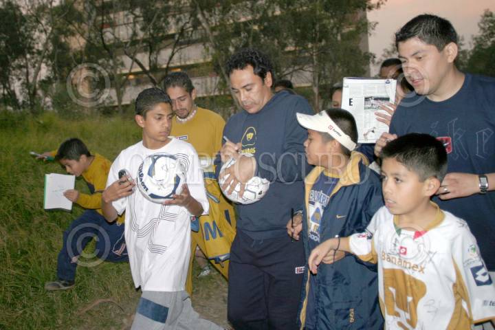 México D.F 31 DICIEMBRE 2004.- Francisco Fonseca jugador de los Pumas de la Universidad Nacional Autóma de México durante el entrenamiento en la cancha dos del estadio universitario firma autografos a unos aficionados. FOTO:Eunice Adorno/CUARTOSCURO.COM