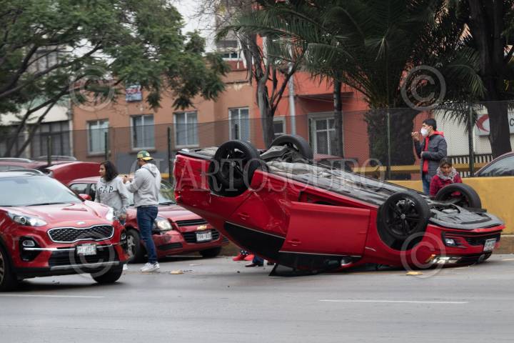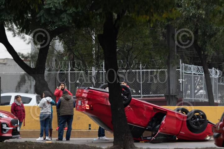 El exceso de velocidad y la pericia al volante provocaron que un automóvil volcará sobre el Circuito Interior, a la altura de la calle de Manuel Carpio.
