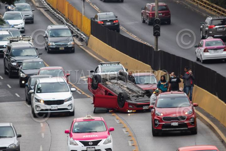 Una joven de 20 resultó ilesa tras volcar la unidad de Uber en que viajaba en Tlalnepantla de Baz, Estado de México.