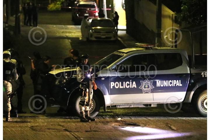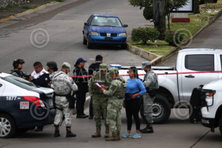 CUERNAVACA, MORELOS, 30AGOSTO2024.- Casi tres decenas de policías viales y preventivos de la capital, personal del Ejército y Guardia Nacional, participan en el acordonamiento de la escena de un crimen, mientras peritos e investigadores de la Fiscalía de Justicia recaban indicios para la averiguación que inicia. Esta mañana un hombre que viajaba en su auto, un Sentra azul sin placas de circulación, por la avenida Vicente Guerrero, colonia Lomas de Cortes, fue atacado a balazos, muriendo en el sitio. Extraoficialmente se conoció que la victima trabaja vendiendo jugos y que un par de hombres lo atacaron a balazos y huyeron en una motocicleta. FOTO: MARGARITO PÉREZ RETANA/CUARTOSCURO.COM