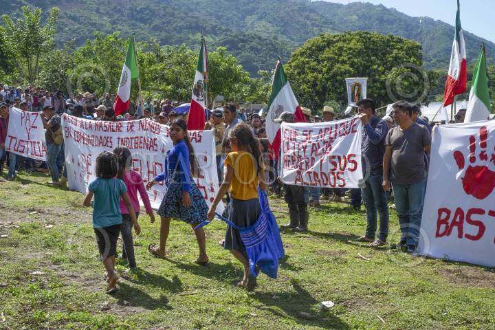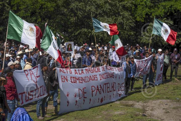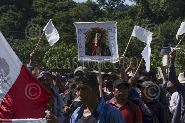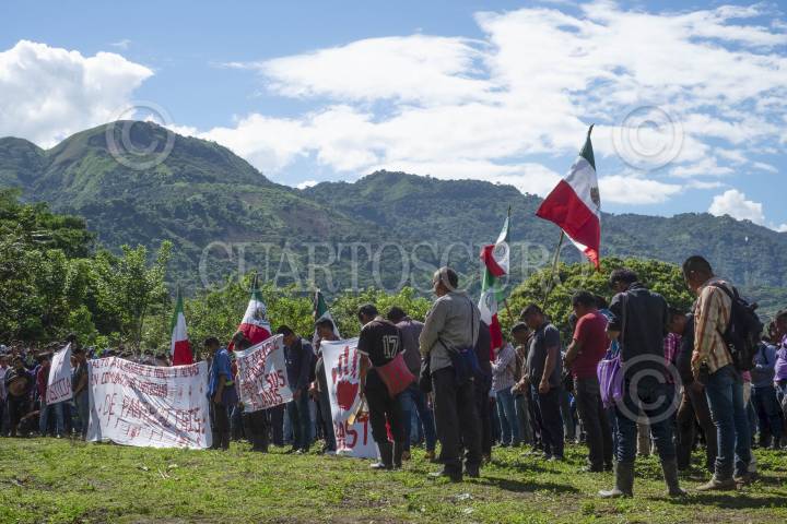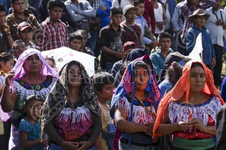 PANTELHO, CHIAPAS, 31OCTUBRE2024.- Pobladores de más de sesenta comunidades del municipio de Pantelhó se reunieron en la región de Guadalupe Victoria para denunciar ante medios de comunicación la violencia que incrementa día con día en sus territorios, ejercida por un grupo armado denominado "Los Herrera", durante el evento la población civil guardó un minuto de silencio en honor al Padre Marcelo, quien fuera asesinado el pasado 19 de octubre. Exigieron al gobierno Paz y Justicia, así como también la destitución del Consejo municipal de gobierno impuesto por el estado chiapaneco en el que están involucradas personas pertenecientes al grupo de Los Herrera, de acuerdo a la información redactada en los comunicados emitidos por los pobladores de este municipio. FOTO: ISABEL MATEOS /CUARTOSCURO.COM