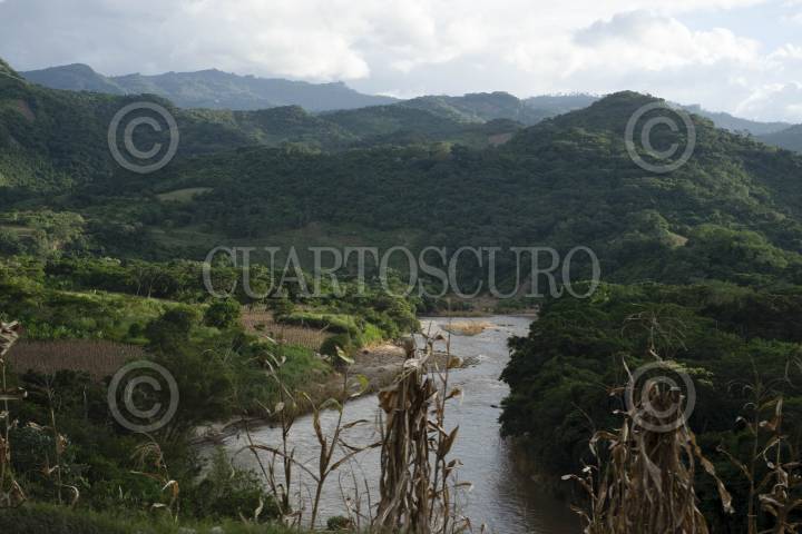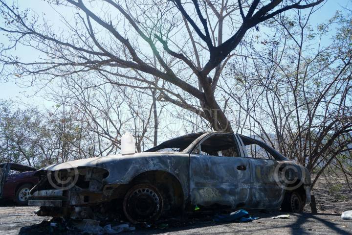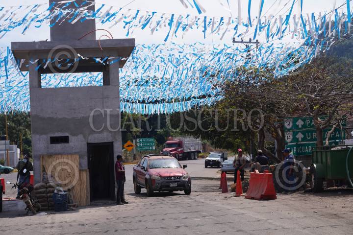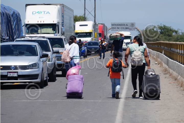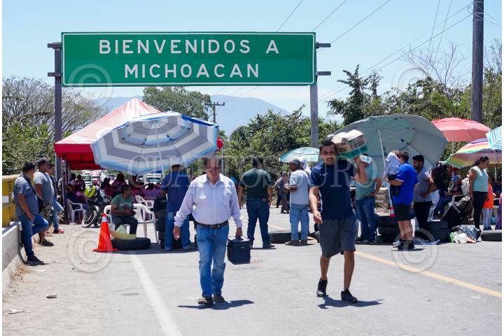 COAHUAYANA, MICHOACÁN, 06ABRIL2024. Habitantes del municipio de Coahuayana realizaron un bloqueo carretero intermitente en el puente que limita Michoacán con Colima para manifestarse por la falta de seguridad, luego de que este martes hubo una incursición por parte del Cartel Jalisco Nueva Generación, que extraoficialmente dejó un saldo de un muerto y nueve heridos. Además, reportaron el uso de drones lanza bombas explosivas de C4 y productos químicos asfixiantes. FOTO: JUAN JOSÉ ESTRADA SERAFÍN /CUARTOSCURO.COM