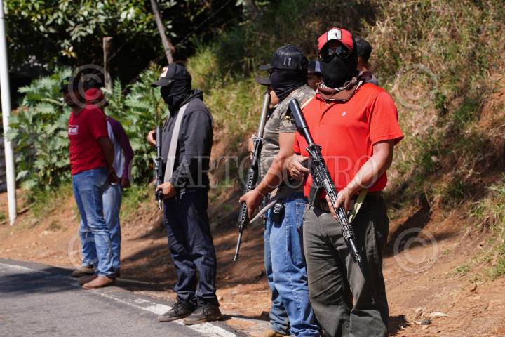 PARACHO, MICHOACÁN. 06DICIEMBRE2023. Una nueva organización autodenominada Guardia Regional Purépecha surgió este lunesen la región de la Meseta Purépecha, aunque hasta el momento las autoridades no handeterminado su origen. El grupo está compuesto por indígenas de la región quese organizaron. Los indígenas armados portaban pistola y rifles de asalto, ademásde que visten en su mayoría ropas camuflageadas, pasamontañas, fornituras yequipo táctico. La Guardia Regional Purépecha anunció patrullajes en susdiversas comunidades de Urapicho, Quinceo, Ahuiran, Pomacuaran y Nurio, paraprevenir robos y asaltos. El grupo indígenas armado también anunció quevigilará las zonas limítrofes con los poblados de Capácuaro (Uruapan) y SantaCruz Tanaco (Cherán). FOTO: JUAN JOSÉ ESTRADA SERAFÍN /CUARTOSCURO.COM
