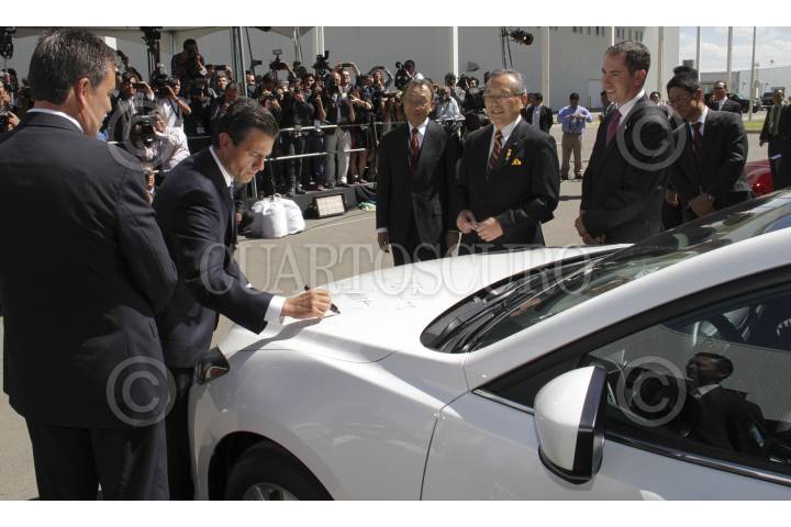SALAMANCA, GUANAJUATO, 27FEBRERO2014.- El Presidente Enrique Peña Nieto inauguró la planta de la empresa automotriz Mazda que tuvo una inversión de 770 millones de dólares. En el evento anunció un Acuerdo de Certidumbre Tributaria y expresó que “mi compromiso con los mexicanos es no proponer nuevos impuestos, ni aumentar las tasas de los ya existentes en lo que resta de esta Administración”. FOTO: PRESIDENCIA /CUARTOSCURO.COM