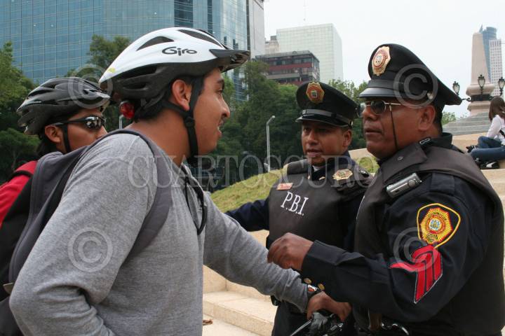 MÉXICO, D.F. 22SEPTIEMBRE2006.- Se celebró el Día Internacional sin Automovil, un contingente de ciclistas salió del Ángel de la Independencia con rumbo al segundo piso del periférico. Integrantes de dicha carrera pelearon con policías que rondaban la zona. FOTO: PAOLA HIDALGO/CUARTOSCURO.COM