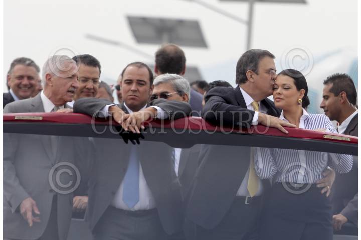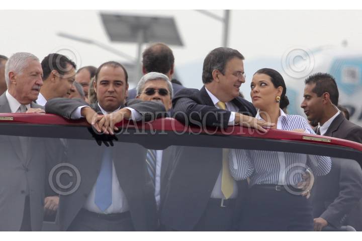 MÉXICO, D.F. 29OCTUBRE2012.- Marcelo Ebrard Casaubón acompañado de su esposa Rosalinda Bueso y el presidente de OHL México José Andrés de Oteyza, inauguraron el tramo tres de la Autopista Urbana Norte, que va de Alencastre a San Antonio. FOTO: SAÚL LÓPEZ/CUARTOSCURO.COM