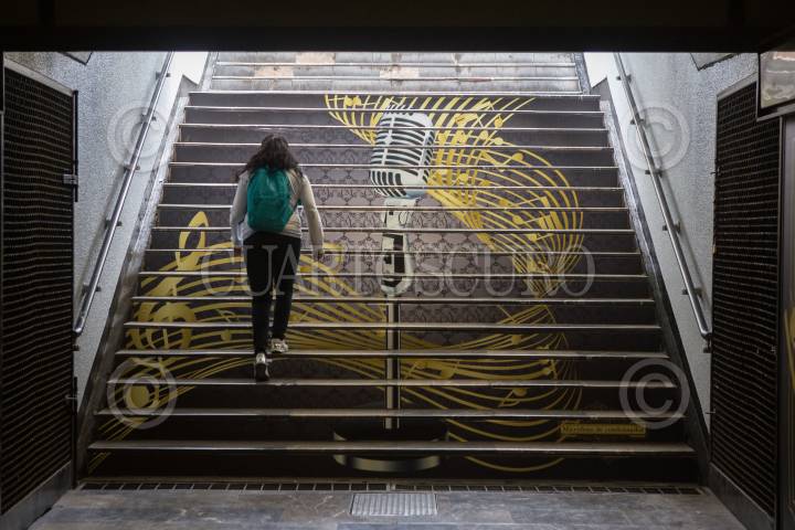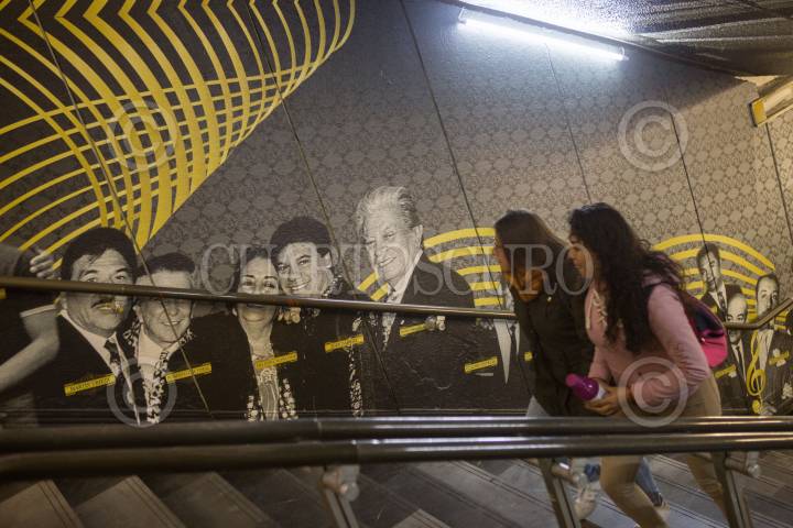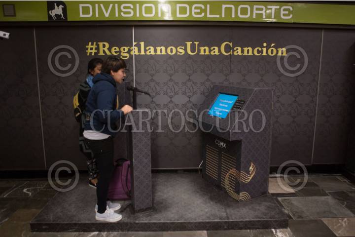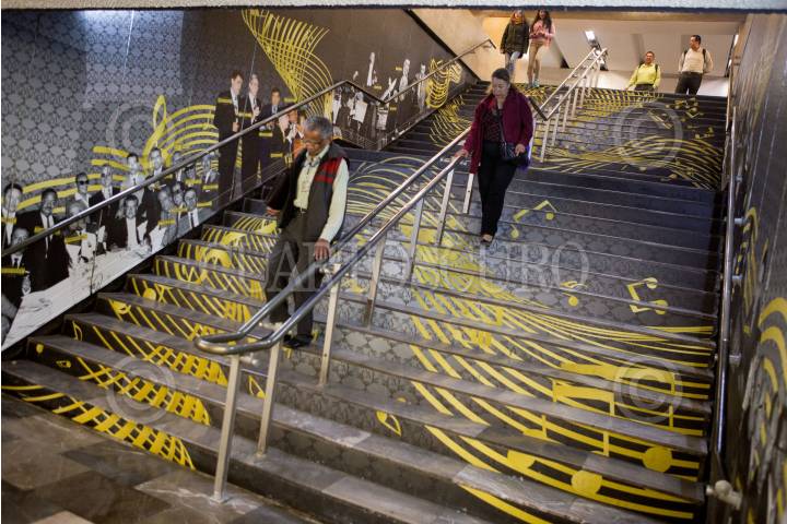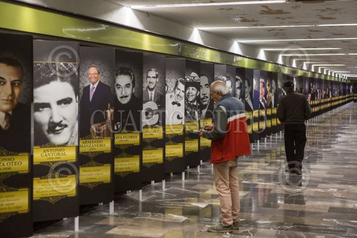 CIUDAD DE MÉXICO, 17OCTUBRE2017.- Aspectos de la exposición Autores y Compositores de México que se encuentra abierta al público y de manera gratuita en las intalaciones del Transporte Colectivo Metro, estación División del Norte de a linea tres. La exposción ocupa el total de escaleras, paredes y vitrinas de la estación y cuenta con rockola-karaoke, la cual puede ser utilizada por cualquier usuario del metro. FOTO: TERCERO DÍAZ /CUARTOSCURO.COM