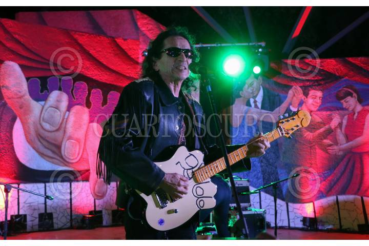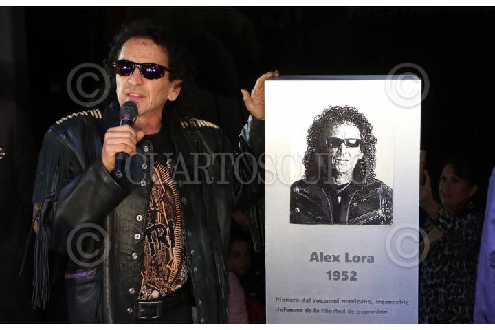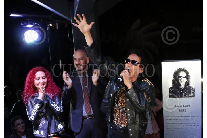Alex Lora, durante la revelación de su Tótem por el 75 aniversario de la SACM y su presentación en el Parque Alfonzo Esparza.