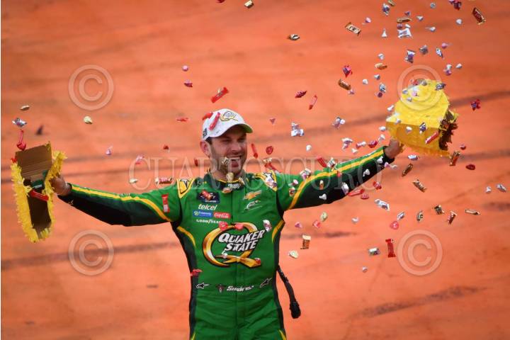 CIUDAD DE MÉXICO, 14JUNIO2025.- El piloto mexicano Daniel Suárez, celebra su triunfo rompiendo una piñata en la carrera "The Chilango" de Nascar Xfinity Series llevada a cabo en el Autódromo Hermanos Rodríguez. FOTO: MARIO JASSO/ CUARTOSCURO.COM