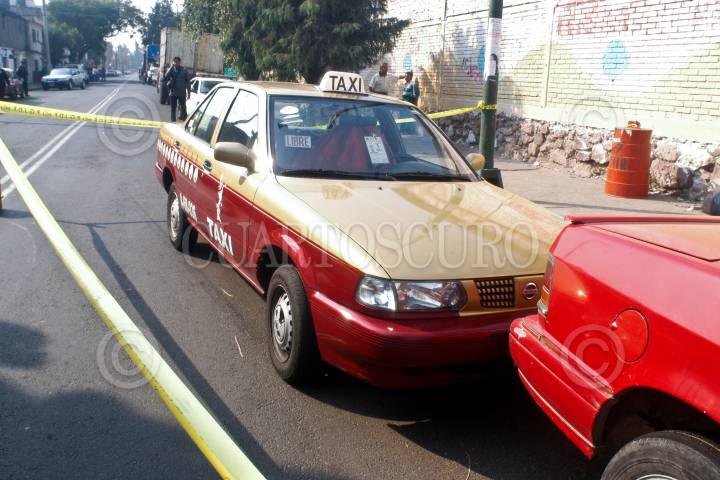 MÉXICO D.F.,11DICIEMBRE2009.- El conductor de un taxi perdió la vida por disparos de arma de fuego, este quedo en el interior de su vehículo Tsusru Taxi con la nueva cromatica. Los hechos se registraron en Av. Atzacoalco y Gambo en la Col. Constitución de la Republica en perimetro de la Delegación Gustavo A. Madero. FOTO: LUIS CARBAYO/CUARTOSCURO.COM