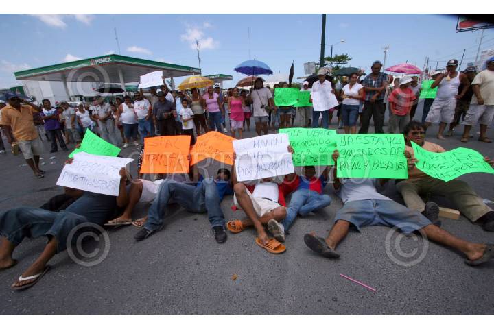 CANCUN, QUINTANA ROO, 08MAYO2010.- Colonos de colonias irregulares se manifestaron en la av. Kabah una de las principales de la ciudad desquiciando el trafico, la protesta fue para exigir transporte hacia esas colonias y que las combis o microbuses puedan llegar del centro hacia las colonias irregulares que se encuentran en las afueras de la ciudad. FOTO: AMARANTA PRIETO/CUARTOSCURO.COM