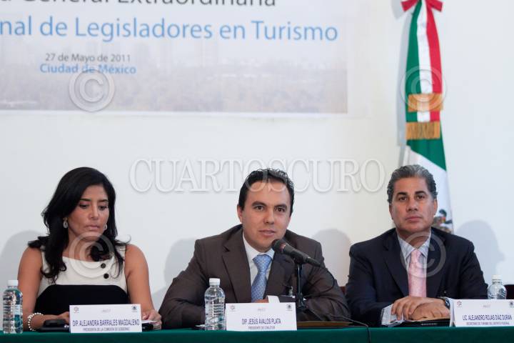 MÉXICO, D.F., 27MAYO2011.- Alejandra Barrales Magdaleno, presidenta de la comisión gobierno de la Asamblea Legislativa, Jesús Ávalos Plata, presidente del Consejo Nacional de Legisladores en materia de Turismo, y Alejandro Díaz Durán, Secretario de Turismo, durante su Asamblea General Extraordinaria del CONLATUR, celebrada en instalaciones de la ALDF. FOTO: MOISÉS PABLO/CUARTOSCURO.COM