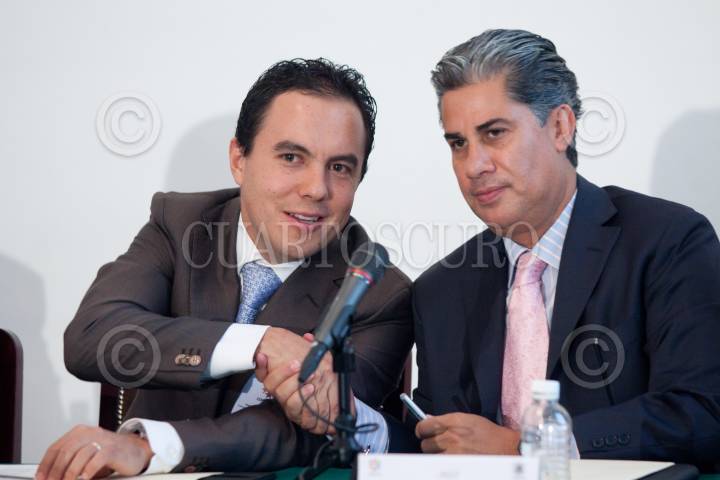 MÉXICO, D.F., 27MAYO2011.- Jesús Ávalos Plata, presidente del Consejo Nacional de Legisladores en materia de Turismo, y Alejandro Díaz Durán, Secretario de Turismo, durante su Asamblea General Extraordinaria del CONLATUR, celebrada en instalaciones de la ALDF. FOTO: MOISÉS PABLO/CUARTOSCURO.COM