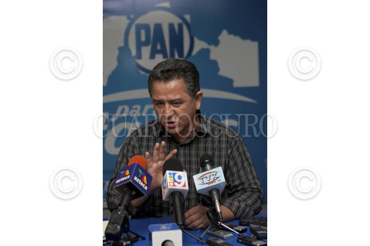 VILLAHERMOSA, TABASCO, 26ENERO2012.- Jorge Avalos Ramón, dirigente estatal del PAN en rueda de prensa asegura que están viendo que el IEPCT esta abocado a 'hacerles trajes a la medida al partido tricolor'. Así mismo revelo y dejo entrever que están analizando la alianza de facto con el PRD. FOTO: MARCO POLO GUZMAN HERNANDEZ/CUARTOSCURO.COM