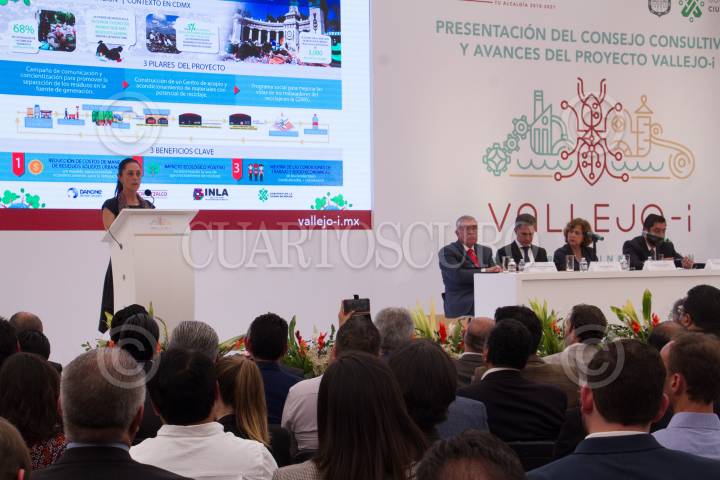 CIUDAD DE MÉXICO, 26FEBRERO2019.-La jefa de Gobierno, Claudia Sheinbaum Pardo, encabezo la presentación del Consejo Consultivo y Avances del Proyecto Vallejo-I, el cual busca reactivar la actividad económica dentro del polígono de Vallejo y sus alrededores, con una inversión de 120 millones por parte del gobierno. Acompañada por el alcalde de Azcapotzalco, Vidal Llerenas Morales; los secretarios de Educación, Ciencia, Tecnología e Innovación, Rosaura Ruiz Gutiérrez; de Obras y Servicios en el Centro Internacional de Negocios ubicado en la alcaldía de Azcapotzalco. FOTO: ROGELIO MORALES /CUARTOSCURO.COM