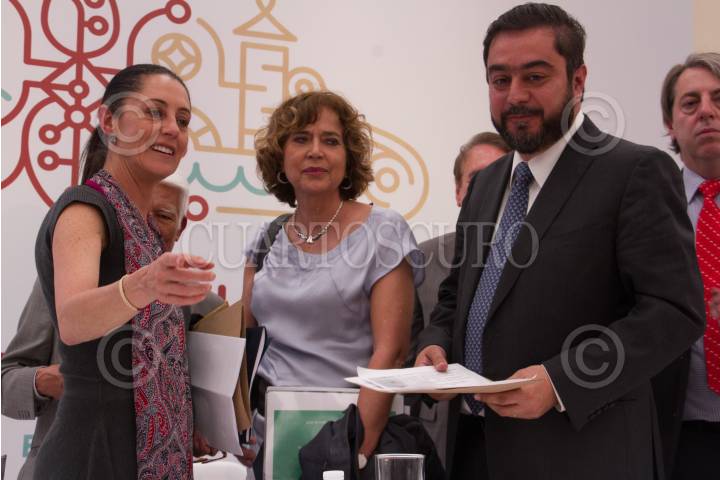 Claudia Sheinbaum Pardo, Jefa de Gobierno; Rosaura Ruíz Gutiérrez, Secretaria de Educación, ciencia, tecnología e innovación y Vidal Llerenas Morales, Alcalde de Azcapotzalco después de la presentación del Consejo Consultivo y Avances del Proyecto Vallejo-I, el cual busca reactivar la actividad económica dentro del polígono de Vallejo y sus alrededores. FOTO: ROGELIO MORALES /CUARTOSCURO.COM