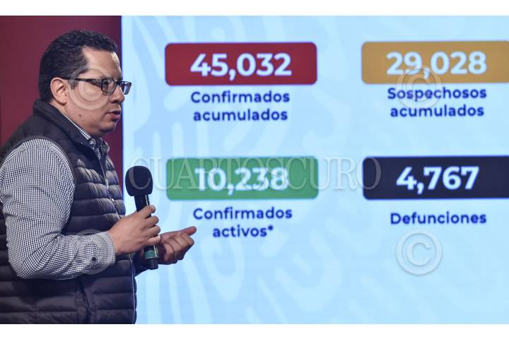 Hugo López-Gatell Ramírez, Subsecretario de Prevención y Promoción de la Salud, ofreció conferencia de prensa para informar sobre la actualización de datos de la pandemia de coronavirus (covid-19) en el país. La actualización indica 45,032 casos confirmados acumulados, 10,238 casos confirmados activos y 4,767 defunciones.
