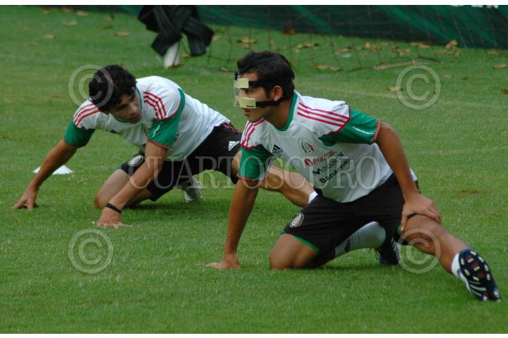 AVÁNDARO, ESTADO DE MÉXICO, 22ABRIL2010.- Israel Castro y Adrián Aldrete durante el entrenamiento de la selección mexicana de fútbol en el Club de Golf Avándaro. FOTO: IVAN STEPHENS/CUARTOSCURO.COM
