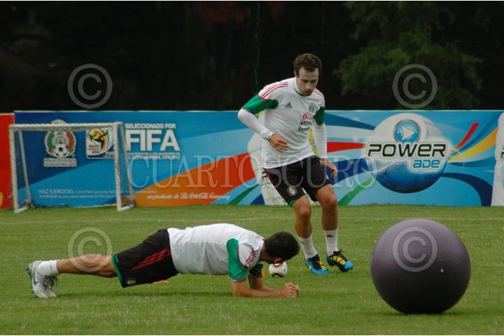AVÁNDARO, ESTADO DE MÉXICO, 22ABRIL2010.- Gerardo Torrado y Adrián Aldrete durante el entrenamiento de la selección mexicana de fútbol en el Club de Golf Avándaro. FOTO: IVAN STEPHENS/CUARTOSCURO.COM