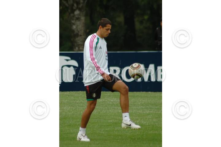 AVÁNDARO, ESTADO DE MÉXICO, 22ABRIL2010.- Javier Hernández durante el entrenamiento de la selección mexicana de fútbol en el Club de Golf Avándaro. FOTO: IVAN STEPHENS/CUARTOSCURO.COM