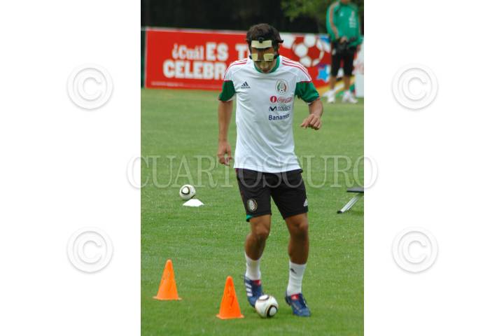 AVÁNDARO, ESTADO DE MÉXICO, 22ABRIL2010.- Cuauhtemoc Blanco durante el entrenamiento de la selección mexicana de fútbol en el Club de Golf Avándaro. FOTO: IVAN STEPHENS/CUARTOSCURO.COM