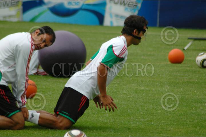 AVÁNDARO, ESTADO DE MÉXICO, 22ABRIL2010.- Cuauhtemoc Blanco y Adrián Aldrete durante el entrenamiento de la selección mexicana de fútbol en el Club de Golf Avándaro. FOTO: IVAN STEPHENS/CUARTOSCURO.COM