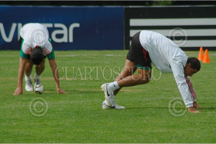 AVÁNDARO, ESTADO DE MÉXICO, 22ABRIL2010.- Adrián Aldrete y Cuauhtemoc Blanco durante el entrenamiento de la selección mexicana de fútbol en el Club de Golf Avándaro. FOTO: IVAN STEPHENS/CUARTOSCURO.COM