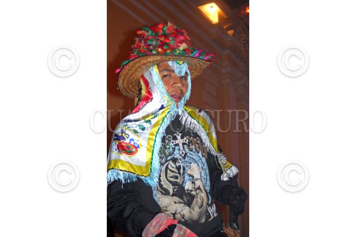 HUATUSCO, VERACRUZ, 27FEBRERO2010.- Danzante negro portando el traje caracteristico de la danza religiosa de los macheteros, ritual ofrecido a la Virgen de Guadalupe en El Cerrito, lugar tradicional donde cada 12 de diciembre los lugareños se dan cita para realizar las celebraciones religiosas. FOTO: GUADALUPE CARRILLO/CUARTOSCURO.COM