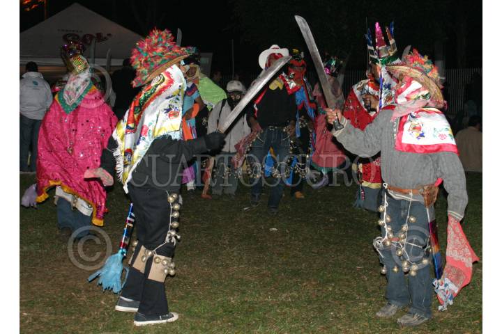 HUATUSCO, VERACRUZ, 27FEBRERO2010.- La noche de ayer dio inicio el Primer Foro Nacional de Turismo Naturaleza y Aventura realizado en Huatusco, con la tradicional danza religiosa de los macheteros. FOTO: GUADALUPE CARRILLO/CUARTOSCURO.COM