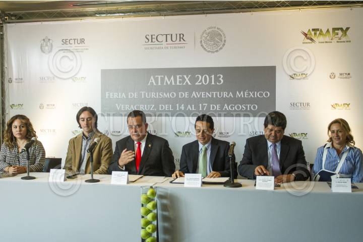 MÉXICO D.F., 03JULIO2013.- Harry Grappa Guzmán, secretario de Turismo y Cultura Cinematográfica de Veracruz, Carlos Manuel Joaquín González, subsecretario de Turismo federal y la velerista Galia Moss, encabezaron la conferencia de presentación de ATMEX 2013, Feria de Turismo de Aventura México. FOTO: ISAAC ESQUIVEL /CUARTOSCURO.COM