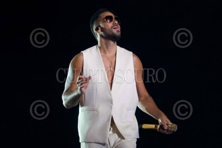 El cantante Romeo Santos durante su presentación en el recinto de Campo Marte como parte de su gira Formula.