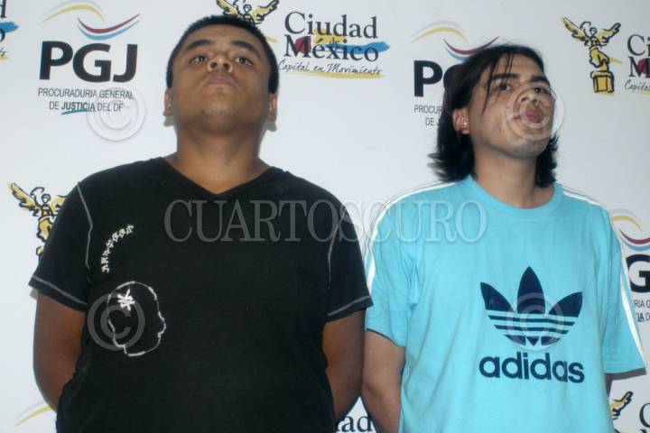 MÉXICO D.F., 12MARZO2010.- La Procuraduría General de Justicia del Distrito Federal (PGJDF) ejercitará acción penal contra dos sujetos que privaron de la vida a un elemento de la Policía de Investigación que participaba en operativo para combatir el robo a pasajeros de transporte público en la colonia Acueducto de Guadalupe. La Subprocuraduría de Averiguaciones Previas Desconcentradas, a través del Fiscal Desconcentrado en Gustavo A. Madero, Juan García Romero, informó que Jorge Luis García Paredes, alias El Choncho, de 20 años, y Alan Jair Soto Ramírez, El Greñas, de 21 años, serán consignados ante un Juez Penal en turno del Reclusorio Preventivo Sur, como probables responsables de los delitos de homicidio calificado contra el ejercicio legítimo de la autoridad, tentativa de homicidio contra el ejercicio legítimo de la autoridad y robo calificado agravado diversos. FOTO: LUIS CARBAYO/CUARTOSCURO.COM