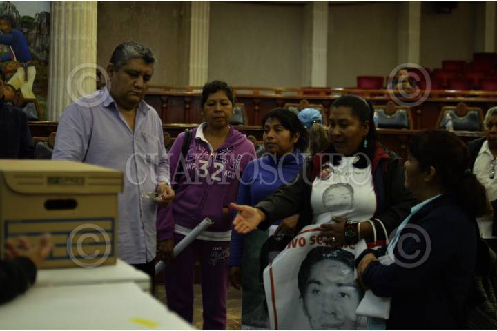 CHILPANCINGO, GUERRERO, 09MARZO2016.- Robespierre Robles Hurtado, presidente del Tribunal Superior de Justicia (TSJ), dio a conocer a los padres de los 43 normalistas desaparecidos que sí existe el material videográfico tomado por las cámaras de vigilancia del Palacio de Justicia de Iguala, y que Lambertina Galeana Marín, entonces magistrada presidente del (TSJ) los entrego a la PGR. Esto durante una reunión que sostuvo con los familiares de los estudiantes secuestrados en Iguala en donde les entregó copias certificadas de las averiguaciones de la investigaciones de lo sucedido la noche del 26 de septiembre y madrugada del 27 de 2014. FOTO: JOSÉ I. HERNÁNDEZ /CUARTOSCURO.COM