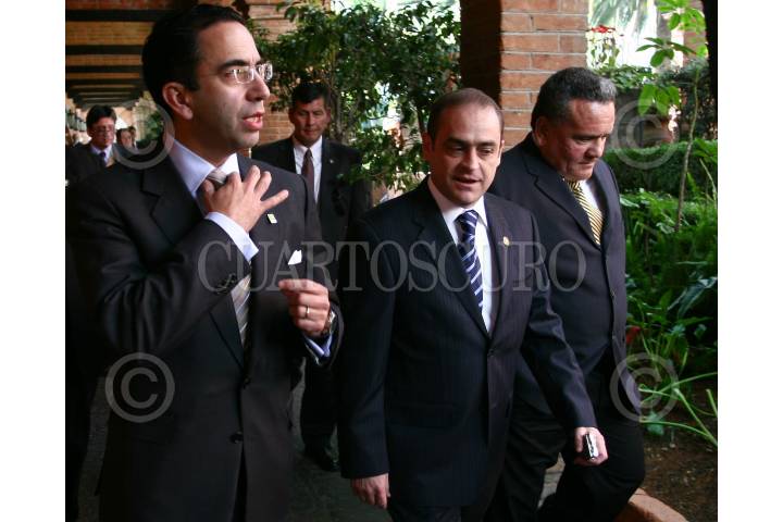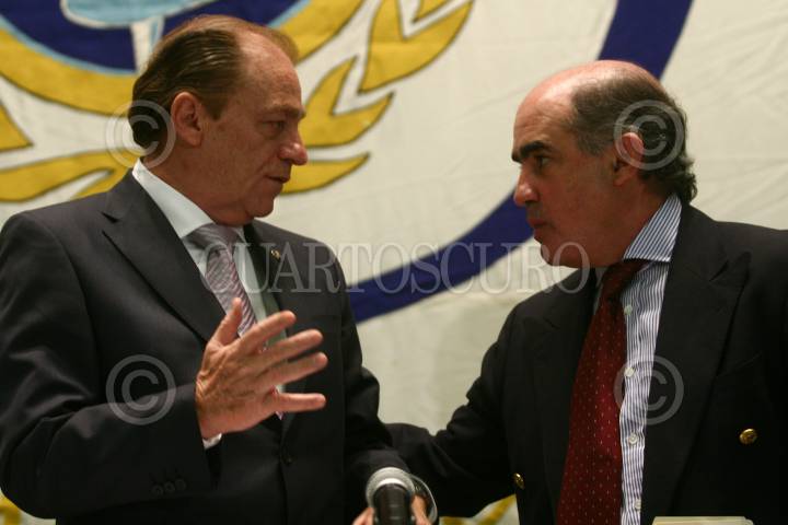 MÉXICO, D.F., 23ENERO2009.- Alejandro Nava Vélez,, Secretario General ASPA de México y Luis Tellez Kuenzler, Secretario de Comunicaciones y Transporte, durante la asamblea del "Día de la Emancipación del Piloto Aviador" organizado por la Asociación de Pilotos Aviadores de México organizado por la Asociación de Pilotos Aviadores. El evento se realizó en un restaurante de la colonia Polanco. FOTO: MOISÉS PABLO/CUARTOSCURO.COM