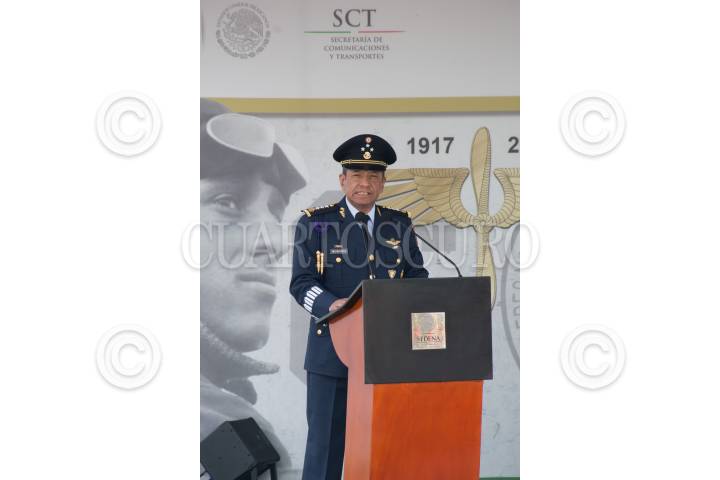 CIUDAD DE MÉXICO, 05JULIO2017.- Carlos Antonio Rodríguez Munguia, general de División Piloto Aviador Diplomado de Estado Mayor Aéreo, durante la ceremonia del 100 aniversario del primer correo aéreo en México que llegó en manos del teniente Horacio Ruíz Gaviño, pionero de la aviación militar en México. El correo consistía en una valija ordinaria que contenía 534 cartas y 67 tarjetas procedentes de Pachuca, Hidalgo. FOTO: MARIO JASSO /CUARTOSCURO.COM