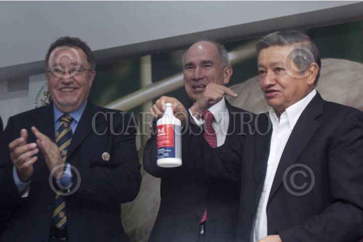 MÉXICO D.F., 26JULIO2012.- Francisco Javier Mayorga, titular de la Secretaría de Agricultura, Ganadería Desarrollo Rural, Pesca y Alimentación (SAGARPA) durante el banderazo de salida de un primer lote de 10 millones de vacunas contra la gripe aviar H7N3 la cual será entregada a productores avicolas de los Altos de Jalisco. La vacuna fue creada por la Productora Nacional de Biológicos Veterinarios (Pronabive) con el apoyo de tres laboratorios privados. FOTO: RODOLFO ANGULO /CUARTOSCURO.COM
