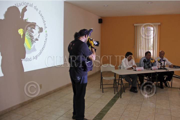 EL SALTO, JALISCO, 04JULIO2012.- En rueda de prensa, el Servicio Nacional de Sanidad, Inocuidad y Calidad Agroalimentaria (Senasica), encabezado por Dr. Enrique Sánchez Cruz, Director en Jefe, dio a conocer que con respecto al brote de gripe aviar H7N3 en los municipios de Acatic y Tepatitlán, en los altos de Jalisco, que se han revisado 129 granjas avícolas, en donde se han confirmado hasta ayer en la noche, la presencia del brote de influenza aviar en 24 granjas, 10 de las mismas resultaron negativas y las restantes se continúan con los diagnósticos del laboratorio. Casi 990 mil aves han muerto desde la detección de este brote en junio pasado. FOTO: FERNANDO CARRANZA GARCIA /CUARTOSCURO.COM