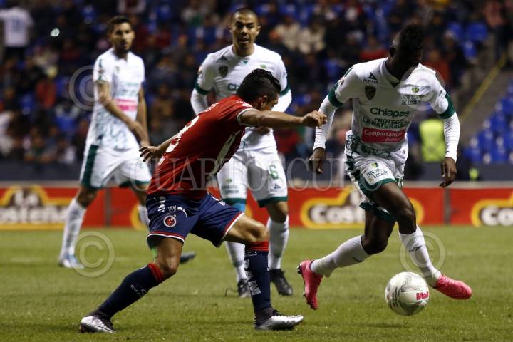 PUEBLA, PUEBLA, 23ENERO2016.- Los jugadores Avilés Hurtado y Jesús Paganoni durante jugada del partido entre los Tiburones de Veracruz y los Jaguares de Chiapas correspondiente a la jornada 3 del torneo de Clausura 2016 de la liga de futbol MX celebrado en el estadio Cuahutémoc. FOTO: HILDA RÍOS /CUARTOSCURO.COM