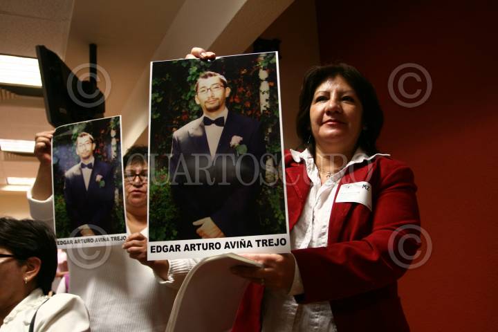MÉXICO, D.F., 20FEBRERO2009.- La señora Alexia Trejo, muestra la foto de su hijo Edgar Arturo Aviña Trejo, quien supuestamente desapareció en Cancún el pasado 2 de noviembre de 2008, el joven se desempeñaba cono subadministrador de la aduana del área de equipaje del aeropuerto de Cancún. Esta asistió a las instalaciones de la Comisión Nacional de Derechos Humanos para presentar una queja en la que señala que la Procuraduría General de la República no ha investigado el caso de forma correcta. FOTO: MOISÉS PABLO/CUARTOSCURO.COM