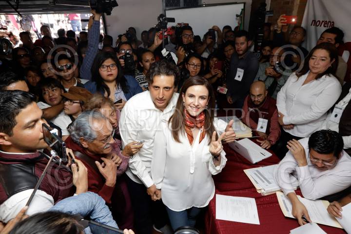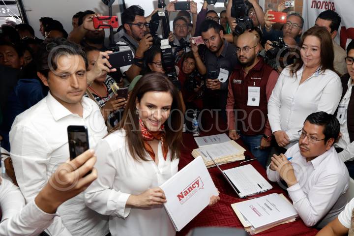 PUEBLA, PUEBLA, 22FEBRERO2018.- Nancy de la Sierra durante su registro como precandidata por Morena a la gobernatura de Puebla. FOTO: MIREYA NOVO /CUARTOSCURO.COM