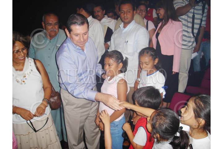 CHILPANCINGO, GUERRERO, 03JULIO2007.- El alcalde Mario Moreno Arcos, la secretaria de Desarrollo Social, Gloria Sierra Lopez y el gobernador del estado, Zeferino Torreblanca Galindo, asistieron a la inauguracion de la sala de cuarta dimension en el museo interactivo La Avispa en la capital del estado, la cual tuvo una inversion de mas de 4 millones de pesos. FOTO: OSCAR ALVARADO/CUARTOSCURO.COM