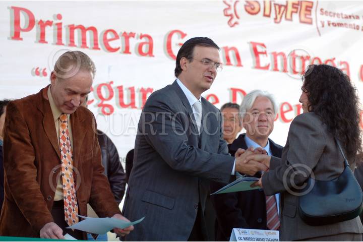 MÉXICO D.F. 06DICIEMBRE2007.- Benito Miron, secretario de trabajo capitalino, el jefe de gobierno Marcelo Ebrard y el secretario de eduación Axel Didriksson, realizaron la entrega de apoyos del programa Seguro de Desempleo en la explanada del Monumento a la Revolución. FOTO: RODOLFO ANGULO/CUARTOSCURO.COM