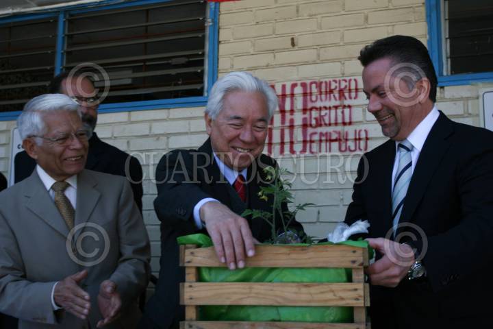 MÉXICO D.F., 26 ENERO2009.- Arturo Aispuro Coronel, Secretario de Desarrollo Urbano del D.F. acompañado de Axel Didricksson Takanayagui, Secretario de Educación, realizaron la presentación de “Azotea Verde Productiva” a estudiantes de la Escuela Secundaria Técnica No. 27. FOTO: GUILLERMO PEREA/CUARTOSCURO.COM