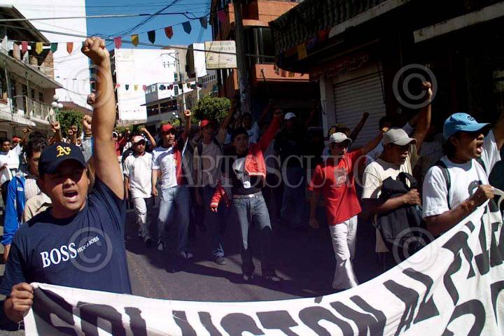 CHILPANCINGO, GUERRERO, 11FEBRERO2005.- Alumnos de la normal rural de Ayotzinapa marcharon por las principales calles de la ciudad, para recordar la represión que sufrieron hace 7 años y exigir una audiencia de carácter resolutivo con el titular de la SEG, Daniel Pano Cruz. FOTO: Oscar Alvarado/CUARTOSCURO.COM